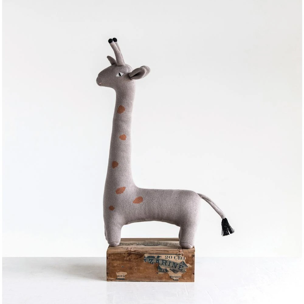 In the shape of a giraffe, this soft pillow can be played with, slept on and loved by your child. The long neck is perfect for little arms to wrap around and hold on tight through the night. When not being played with, it can stand tall on a bed for a fun decoration in a child’s bedroom.