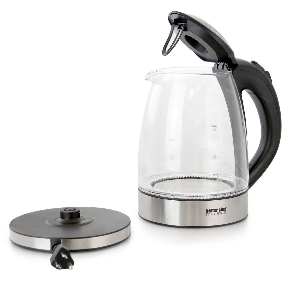 Better Chef’s 1.7L Cordless Electric Glass and Stainless Steel Kettle with Blue LED is ready to help kick start your mornings. This single 7.2 cup kettle comes in a sleek glass and stainless steel design that will accommodate any kitchen. It boils water faster than a standard stove top or microwave. With its stain-resistant borosilicate glass, cleanup is a breeze. Brighten up your day with the kettle’s blue LED base!