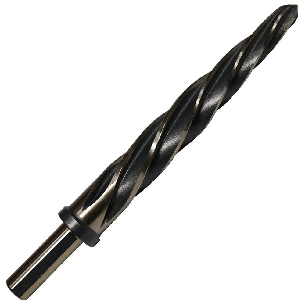 Drill America KFDRBSS high-speed steel bridge reamers are used to align existing holes prior to bolt or rivet installation. Point is tapered to permit entry into overlapping holes. 3 symmetrically placed flats on shank provide positive grip in portable electric and pneumatic tools. Black and gold Killer Force (KFD) bridge reamers are manufactured from premium grade high speed steel. Gold and black surface treated for use in stainless steel and other hard metal drilling.