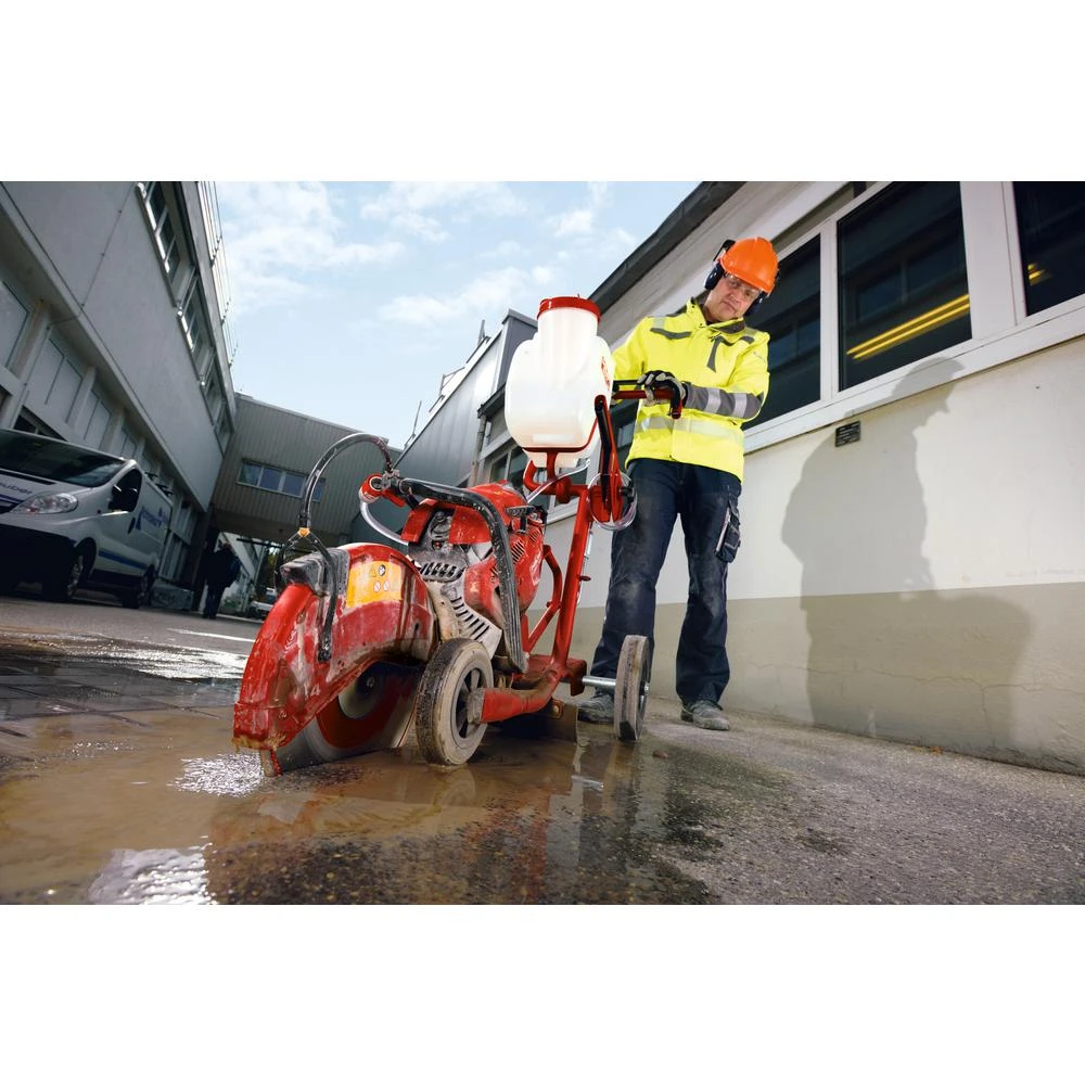 The Hilti DSH-FSC Gas Saw Floor Cart is a heavy-duty design for small cutting jobs requiring the flexibility of a hand-held gas saw combined with the precision cut and performance of a larger model. Complete with a gravity-fed water container, the DSH-FSC is completely portable, while giving you the dust-suppression required on many jobs. When large walk-behind saws take too long to set up, require too much space, or are just not practical, the DSH-FSC Gas Saw Floor Cart is the workhorse that helps you get the job done.