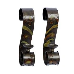 LITTON LANE 19 In. X 5 In. Scrolled Iron Candle Sconces With Metallic Brown Finish (Pair)