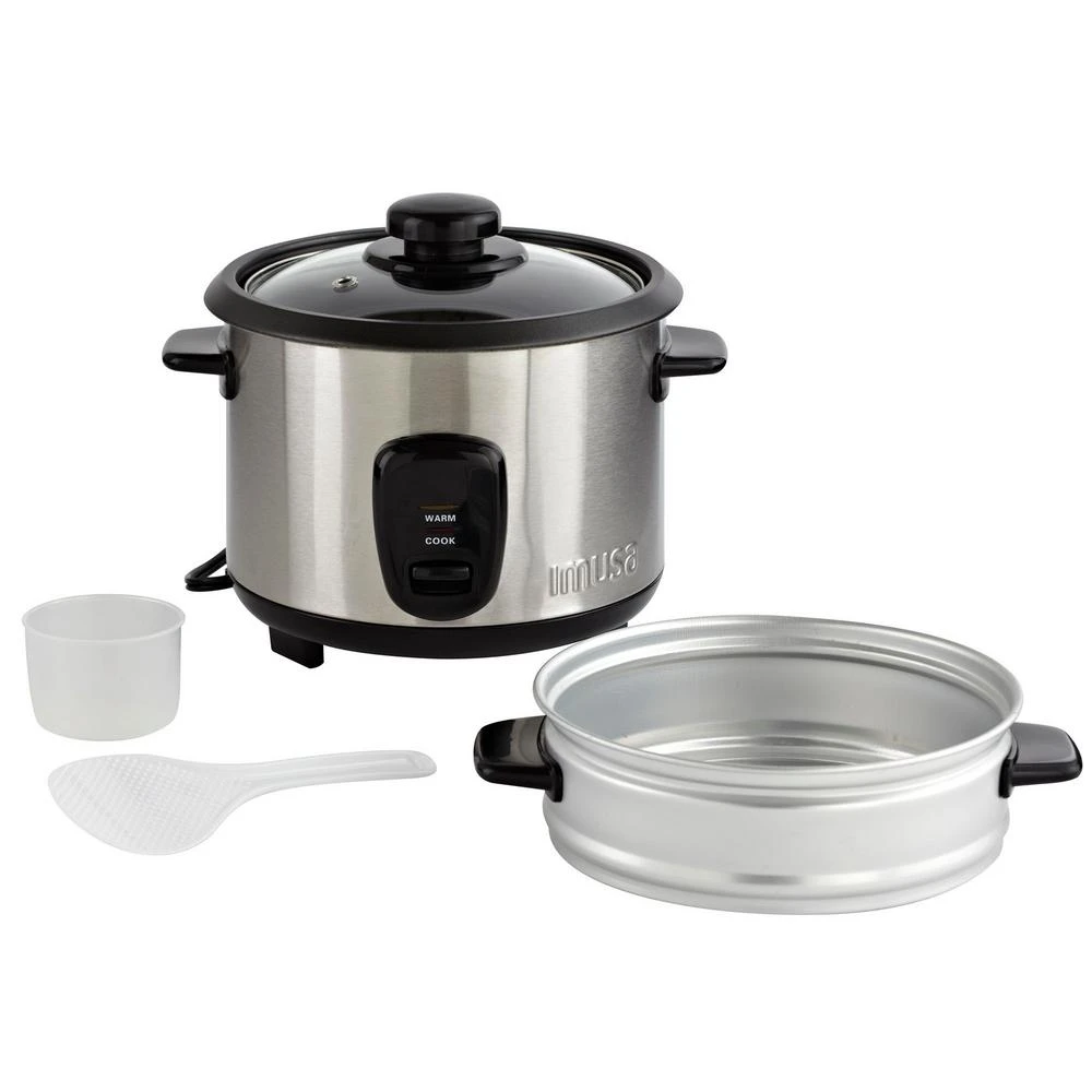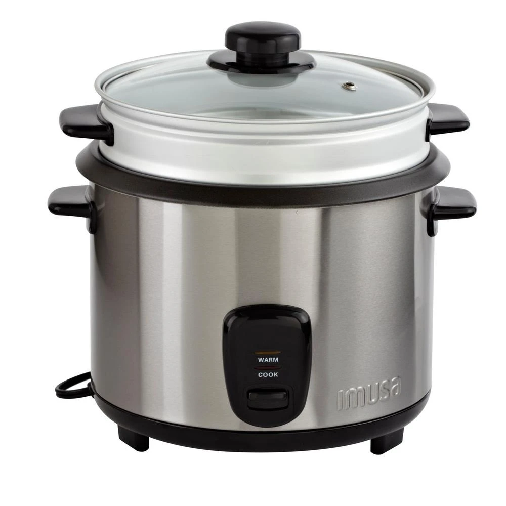 The IMUSA Stainless-steel Rice Cooker will make the perfect rice dish at the touch of a switch. The steam tray will allow you to steam your foods while your rice cooks in the pot below. Cleaning is easy with the removable nonstick coated pot, which prevents your rice and other foods from sticking. Make your favorite rice dishes, vegetables, oatmeal and more with your IMUSA Stainless-steel Rice Cooker.