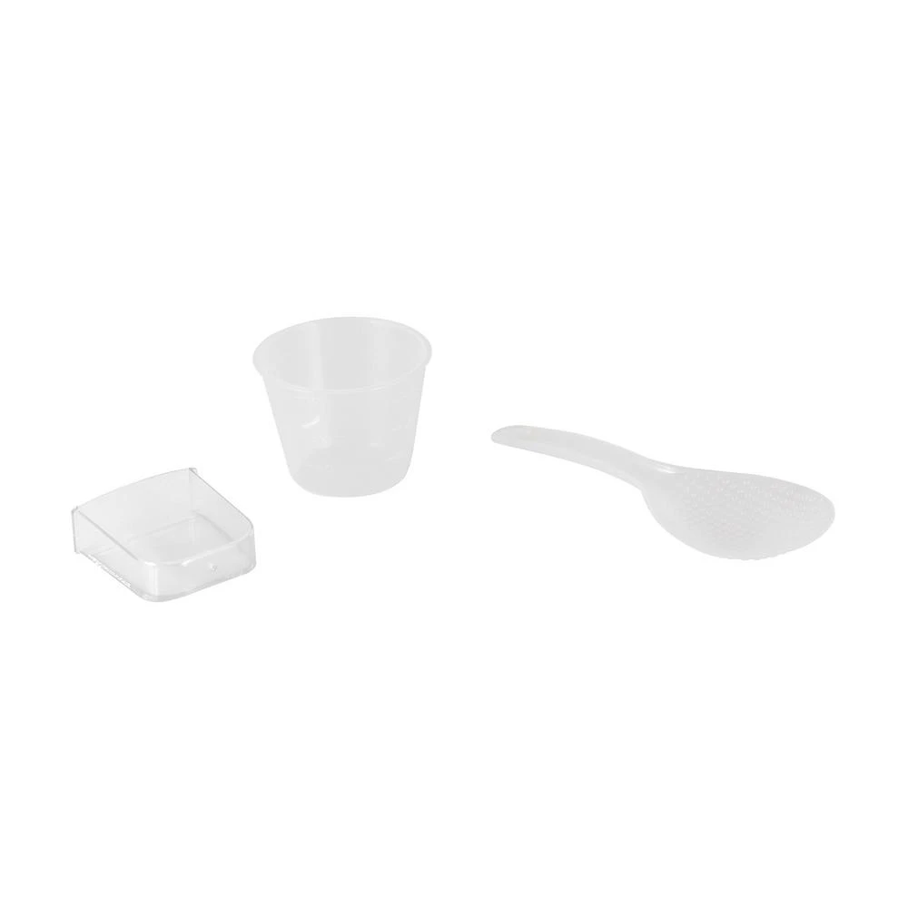 - Built-in safety features include pressure control, safety locking lid, carry handle and non-slip rubber feet