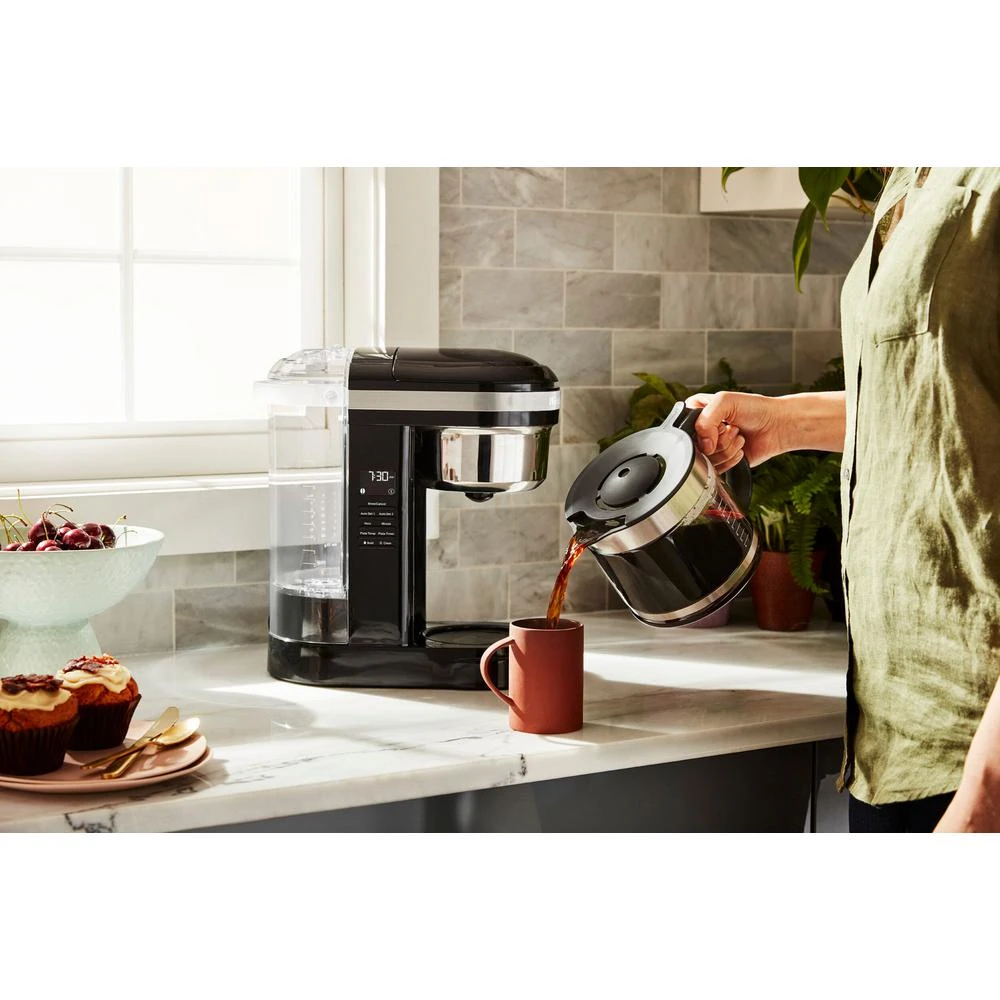 - Programmable warming plate to keep your coffee at the perfect temperature (high or low) up to 4-hours