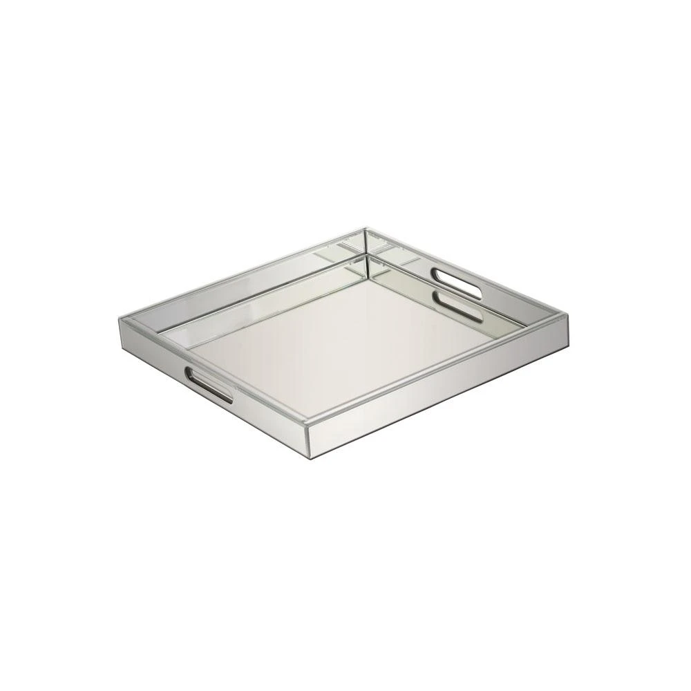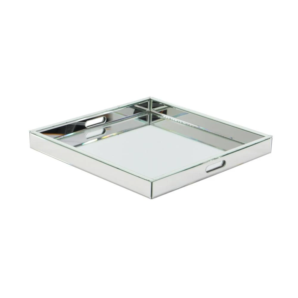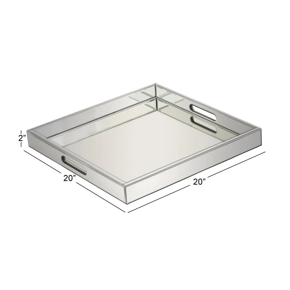 2″ Classic Modern Wood Mirror Tray in Polished Silver Aluminum Exterior and Mirror Glass Interior