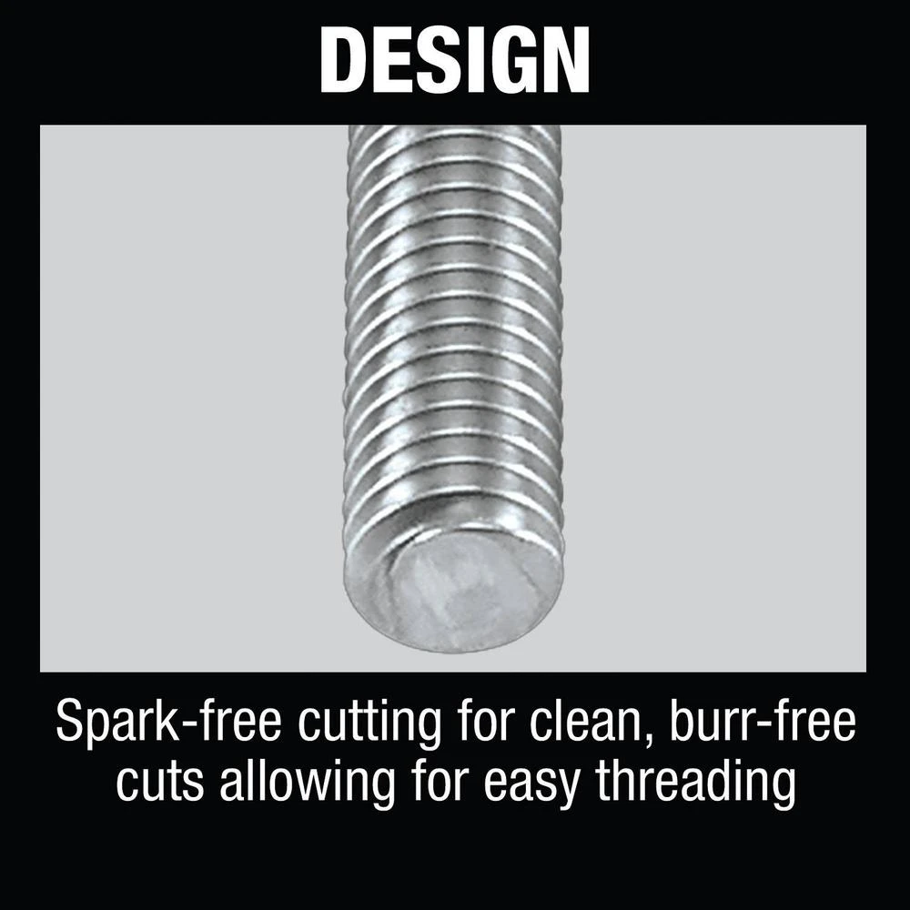 - Spark-free cutting for clean, burr-free cuts allowing for easy threading