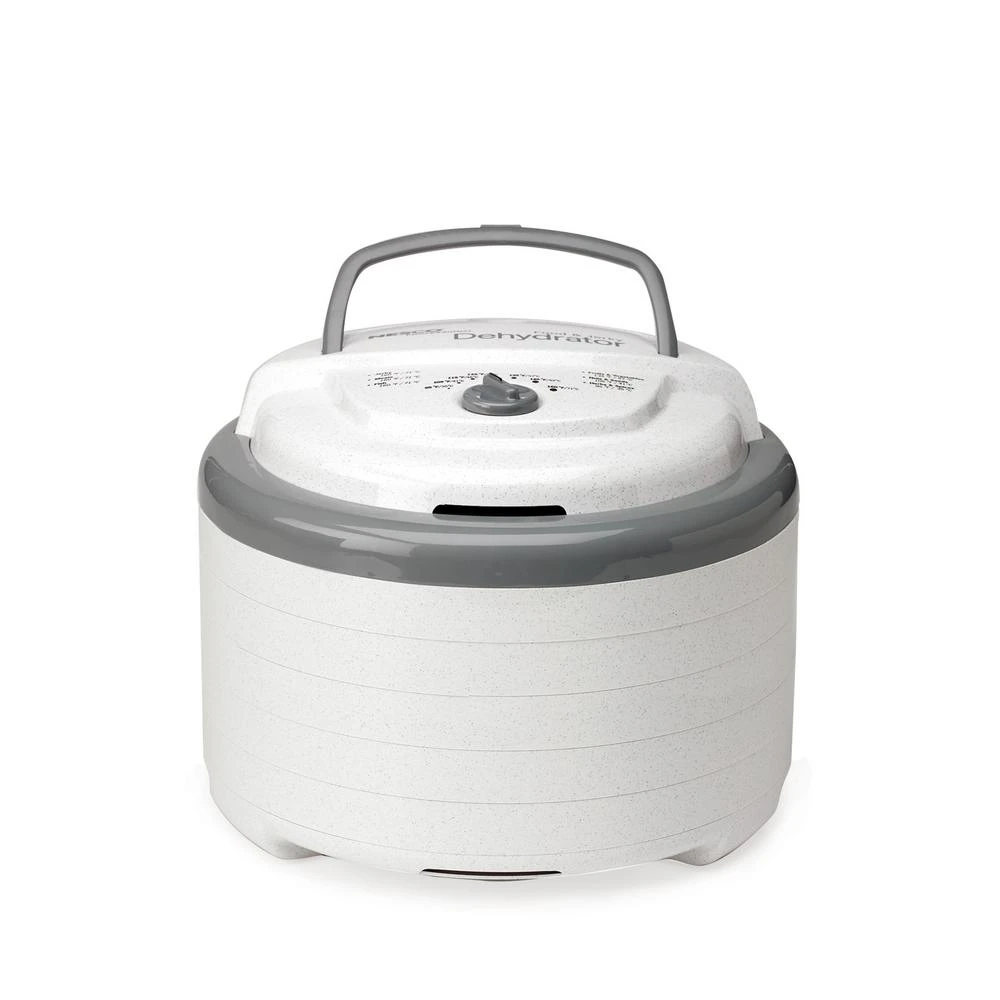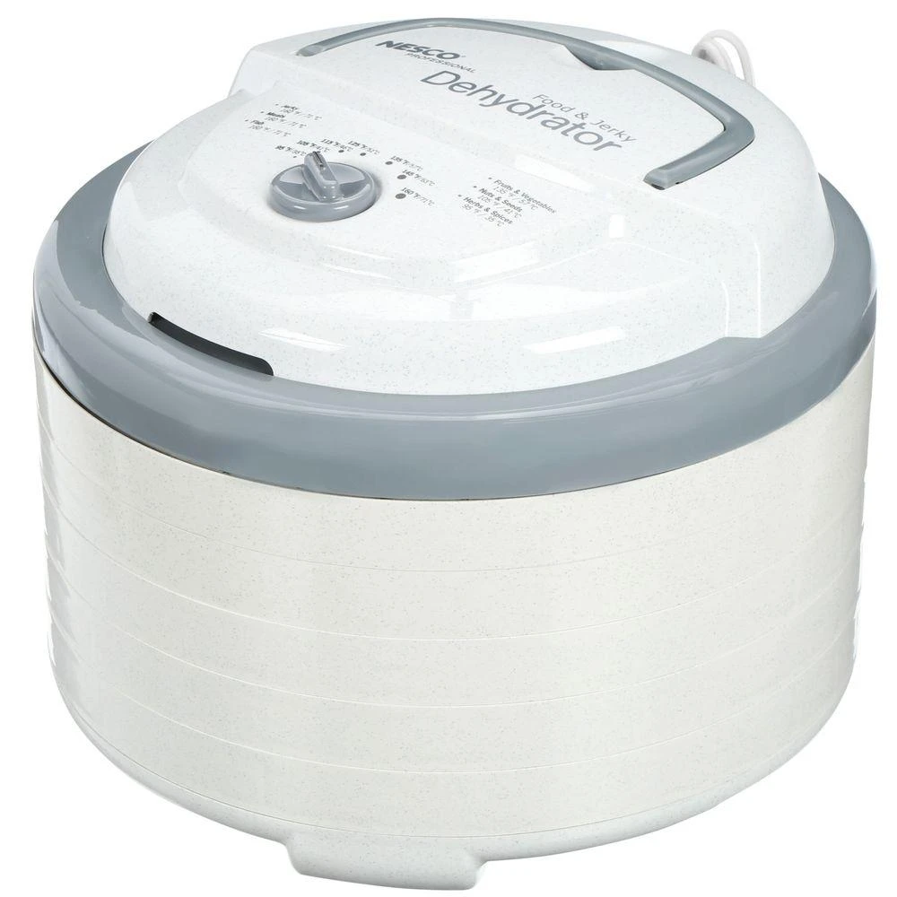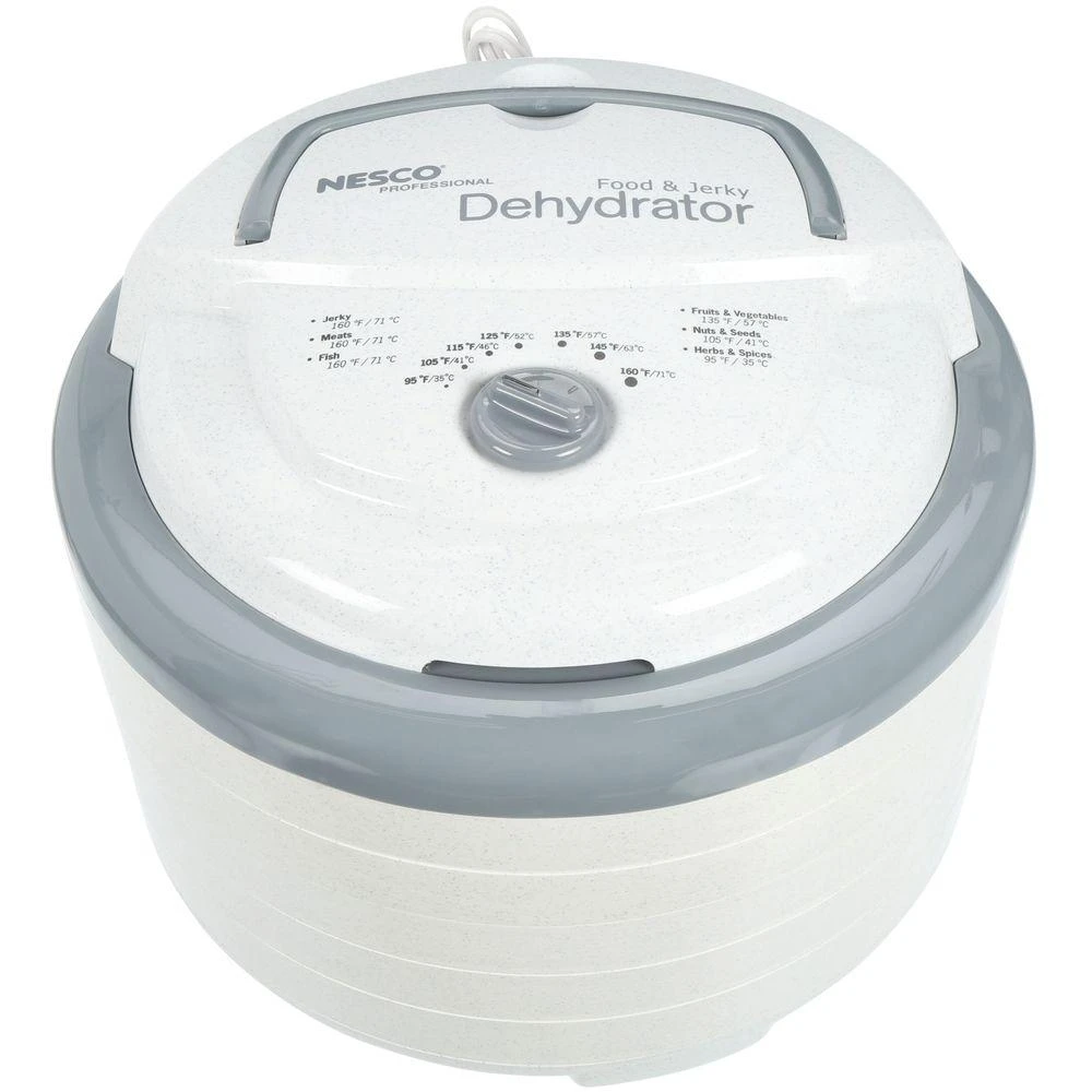 The Snackmaster Pro is one of the newest dehydrators in the Nesco/American Harvest product line. It’s sleek, contemporary design In grey and marble color features a top mounted fan, 600-Watt of drying power and generates maximum speed and quality for dehydrating fruits, vegetables, beef jerky and venison jerky. Helps dry food in hours, not days like ordinary food dehydrators. Makes delicious Beef Jerky even turkey jerky and fish jerky. Make trail mix, homemade yogurt, apple snacks, banana chips, dried soup mixes, dried tomatoes, watermelon, cantaloupe, honeydew, mangoes, papaya and other dried fruits at a fraction of the cost. Make dried herbs and spices; also make potpourri and dried flowers for any occasion.