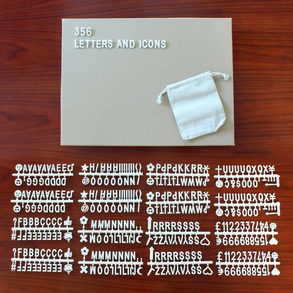 - Changeable letter felt memo board kit includes 356 white plastic letters, numbers and emojis