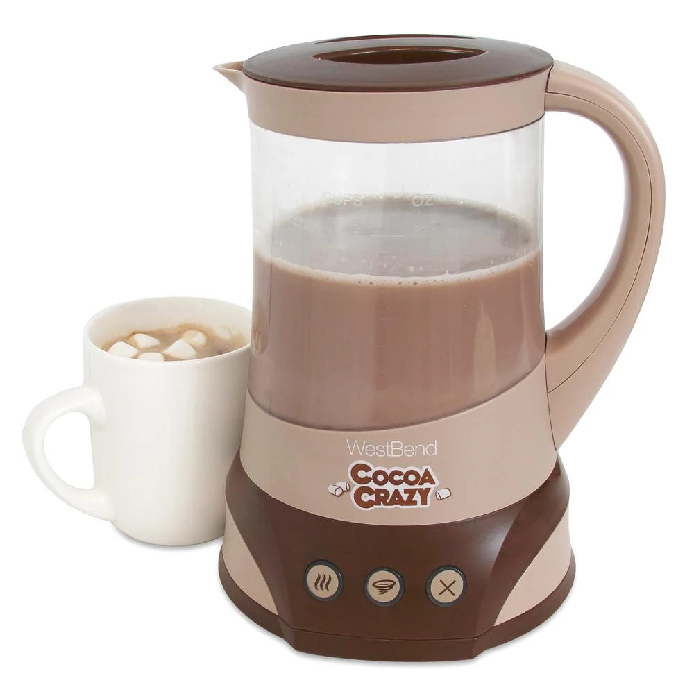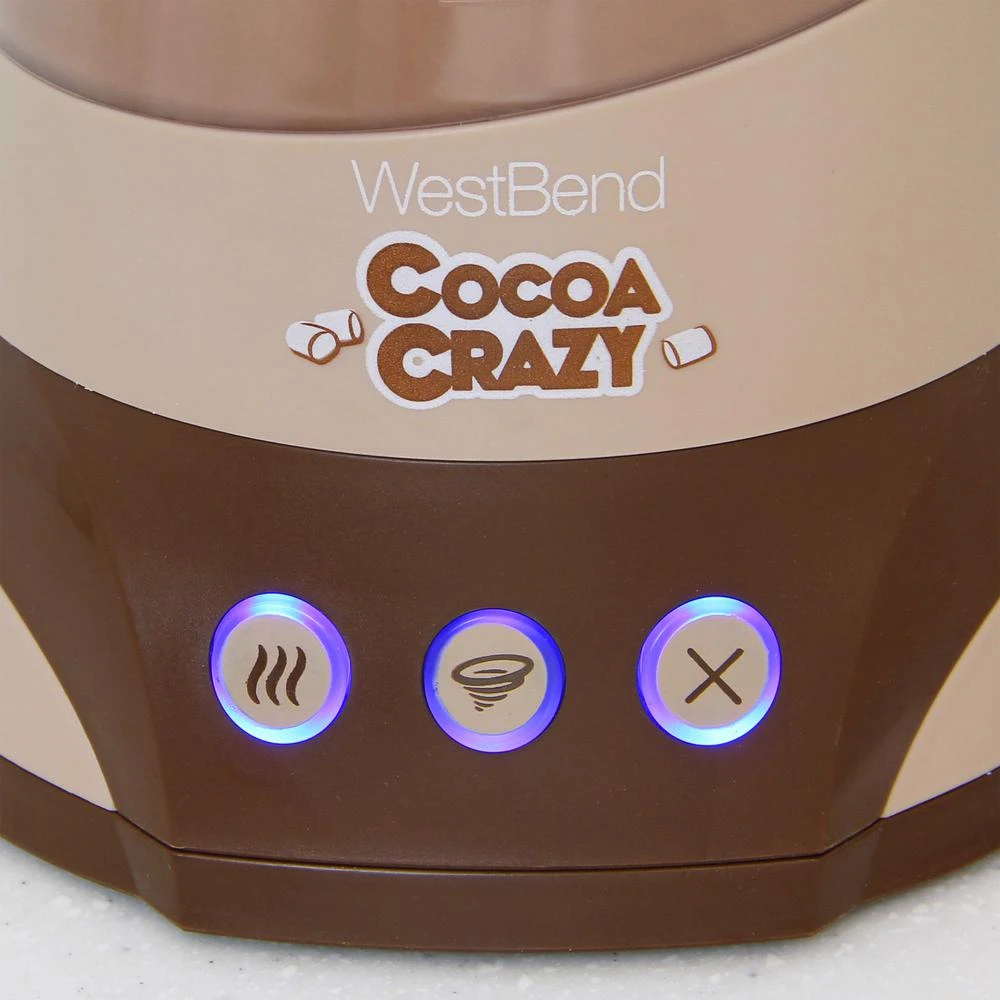 The West Bend 32-Ounce Cocoa Crazy is the perfect tool for everyone who loves hot beverages. Make instant coffees, teas, cocoas, and more with the push of a button. Mix, heat, and froth in one compact machine, enough for 4 servings. Small footprint means this hot drink maker is perfect for small kitchens dorms or offices. The Cocoa Crazy includes the “Perfect Temperature” feature so every cup comes out perfectly. If your hot drink cools down the Cocoa Crazy will automatically re-start and heat back up to the “perfect temperature.” The heating plate is non-stick for easy cleanup, recipes included.